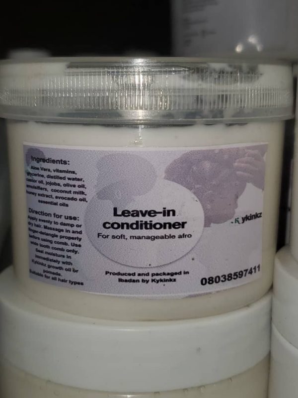 Kykinkz leave in conditioner is a fine whip of essential oils and water based vegetables, to help soften the hair and make it easier to style.